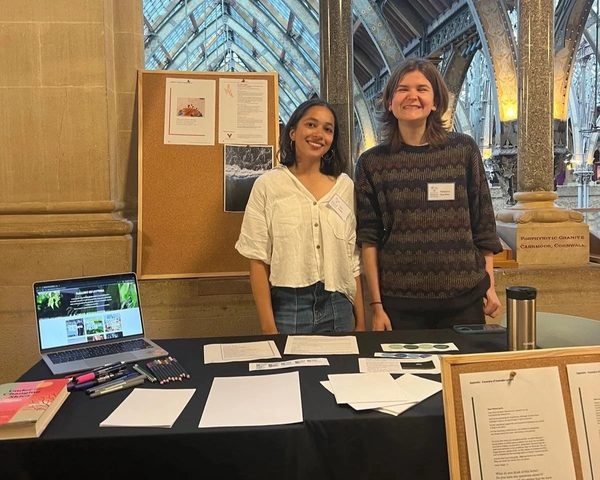 Isha, OCS Co-President ‘25'-’26, and Rebecca, OCS Co-Education Director ‘25-’26, at the Right Here Right Now: Night at the Museum event from Trinity 2025.