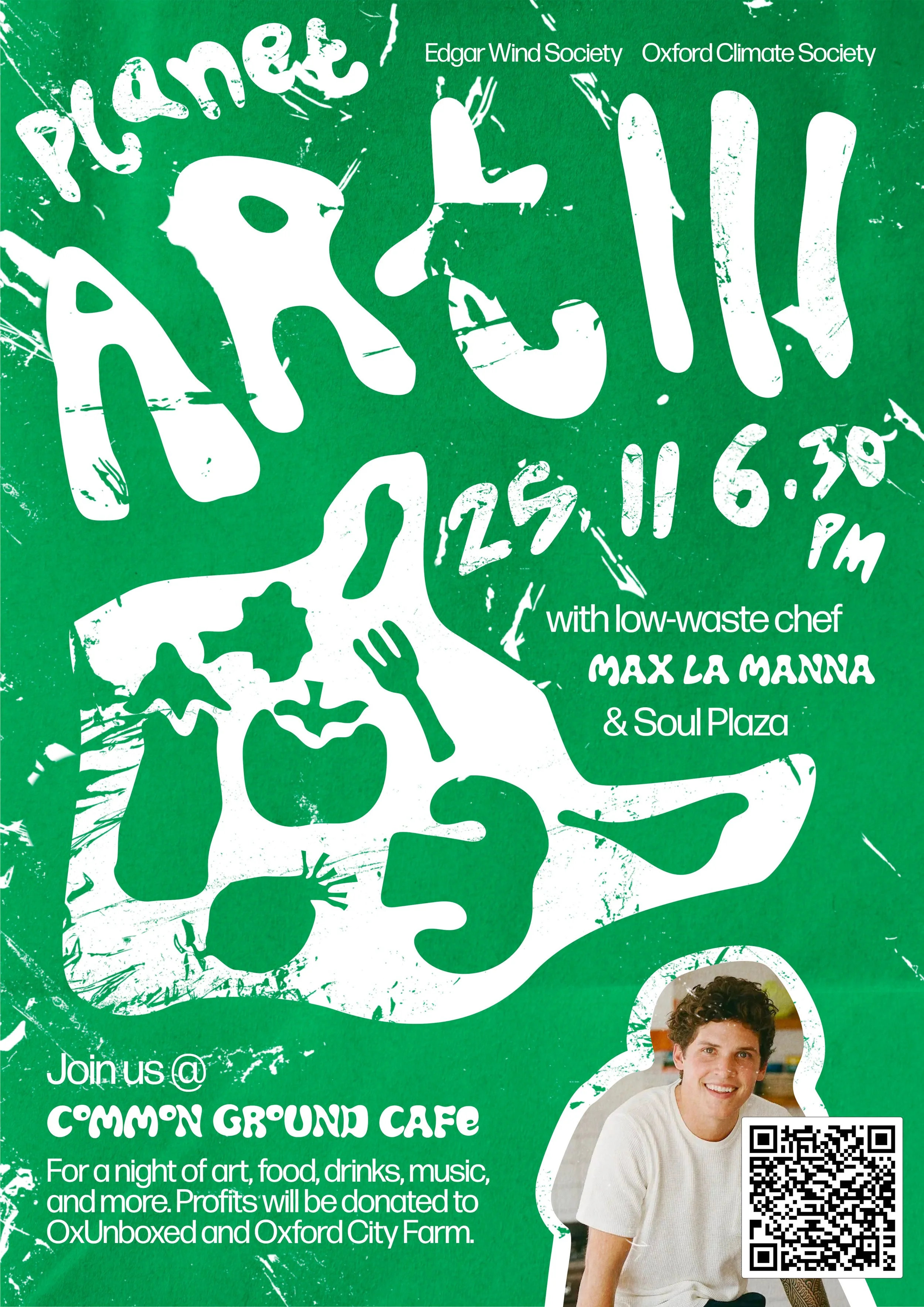 With food sustainability at its heart, Planet Art III served up an unforgettable evening in support of OxUnboxed and Oxford City Farm. Guests were treated to a live cooking demo by low-waste chef Max La Manna, a thought-provoking documentary screening, vibrant student art displays, and feel-good music from Soul Plaza. It was a night full of creativity and community spirit!